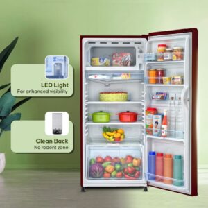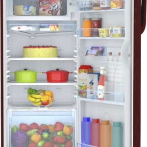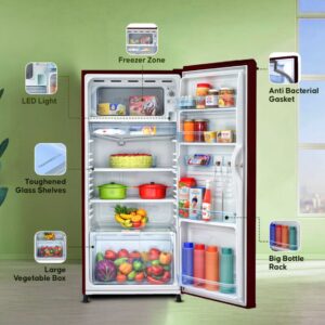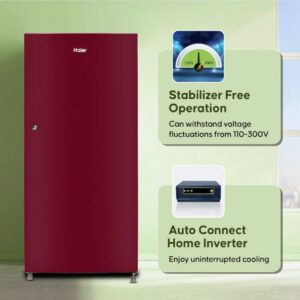 Haier single-door refrigerators offer various features designed to provide efficient cooling and convenience. They’re a popular choice for individuals or small families who don’t require a large amount of storage space or who have limited kitchen space. Diamond Edge Freezing Technology helps in firm ice formation and better cooling retention. This model is designed to operate without the need for an external stabiliser, providing protection against voltage fluctuations and saving space. Durable and easy-to-clean toughened glass shelves provide sturdy support for food items while adding a touch of elegance to the interior. The vegetable crisper in a refrigerator is a specialised compartment designed to store fruits and vegetables at optimal humidity levels, helping to extend their freshness and preserve their nutritional value for a longer period. The door lock feature provides added security to prevent unauthorised access, which is especially useful in households with children. An easy-to-access defrost button allows for quick and hassle-free defrosting, helping to maintain optimal cooling efficiency. They are designed with energy-saving features to minimise power consumption and reduce electricity bills. The refrigerator door is equipped with an anti-bacterial gasket that helps prevent the growth of bacteria and fungi, ensuring hygienic storage conditions.