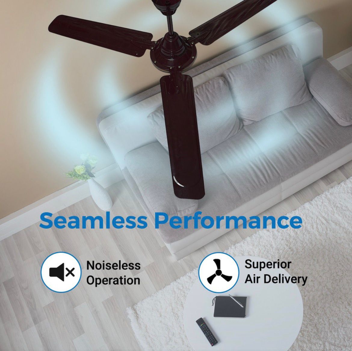 One of the standout features of this ceiling fan is its noiseless operation. Designed to run quietly, it ensures a peaceful environment without the distraction of motor noise. This makes it an excellent choice for bedrooms, study areas, and offices where silence is essential. The high-quality materials and quality mechanism allow you to enjoy the cooling breeze without any disturbance.